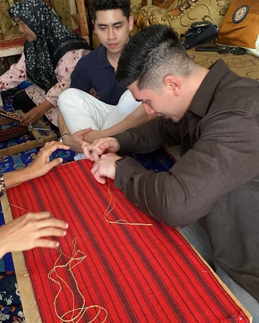 Tak hanya menonton, Verrel dan Athalla juga mencoba menyulam sendiri. Dalam satu video Instagram Alyn Tapis, terlihat Verrel dengan penuh perhatian menata benang sambil dibimbing oleh pengrajin berpengalaman.