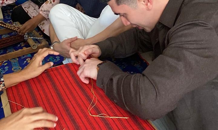Dalam kunjungan tersebut, Verrel, Athalla, dan tim mengobrol hangat dengan para pengrajin Alyn Tapis. Mereka menyaksikan proses sulaman manual — dari benang yang dipersiapkan hingga motif tapis disulam dengan hati-hati.